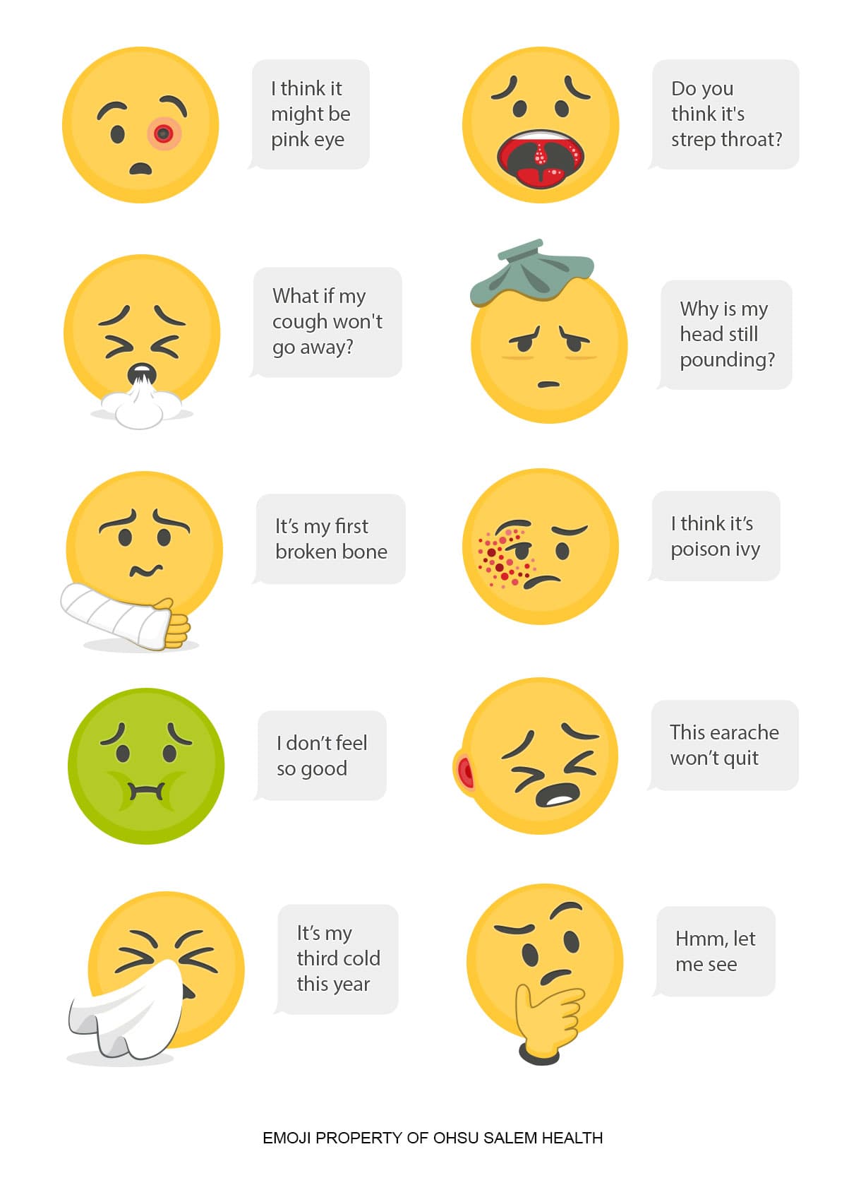 At a glance, Emoji are friendly, supportive, online, modern, and help simplify complex ideas through trustworthy communication. The Emoji set engaged viewers to help them differentiate Urgent Care from the Emergency Room.